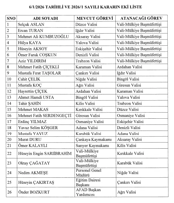 Öte yandan, AFAD Başkan Yardımcısı Önder Bozkurt Ağrı Valisi olarak atandı.
