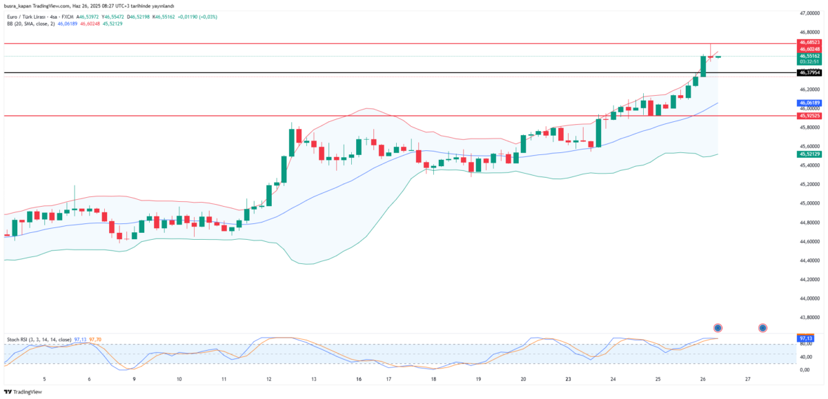 Dünü 45,97 ile 46,37 aralığında geçiren Euro/TL günü 46,33 seviyesinde tamamladı. Euro/TL bu gece 46,68 seviyesine ulaşarak yeni bir rekora imza attı. Bugün sabah seansında 08.24’te 46,55 seviyesinde bulunuyor.