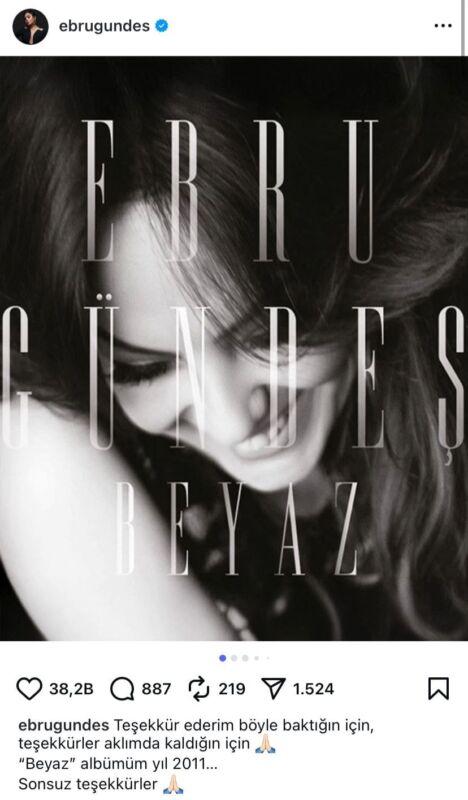 Gündeş, yıllar önceki albümü ve şarkıları için ”Teşekkür ederim böyle baktığın için, teşekkürler aklımda kaldığın için.’ Beyaz albümüm, yıl 2011… Sonsuz teşekkürler” notunu düştü.