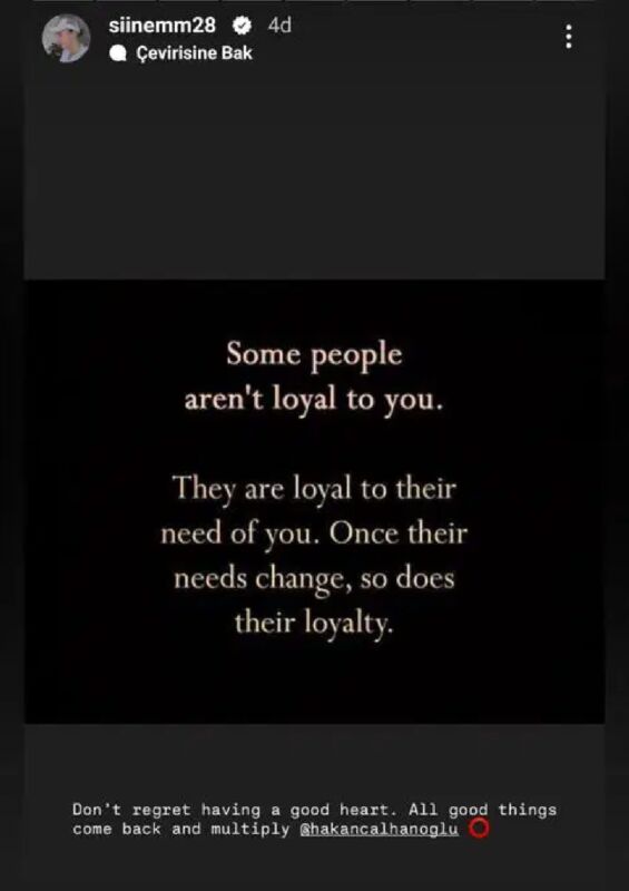 Hakan Çalhanoğlu’nun eşi Sinem Çalhanoğlu, Instagram hesabından dikkat çeken bir paylaşım yaptı. Paylaşımda, “İyi bir kalbe sahip olduğun için pişman olma. Tüm iyi şeyler geri döner ve katlanarak çoğalır” ifadelerine yer verdi.