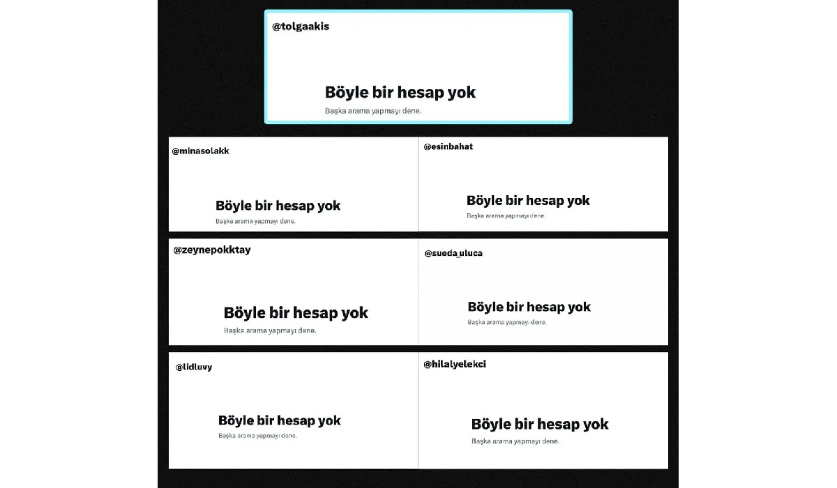Kullanıcılar, kızların veya Tolga Akış’ın hesaplarını etiketlemek istediklerinde “Böyle bir hesap bulunmuyor” uyarısıyla karşılaşıyor.