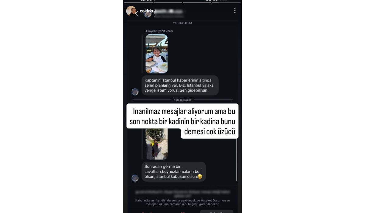 Kübra Çakır, paylaştığı mesajla birlikte, “İnanılmaz mesajlar alıyorum ama bu son nokta. Bir kadının bir kadına bunu demesi çok üzücü” ifadelerini kullandı.