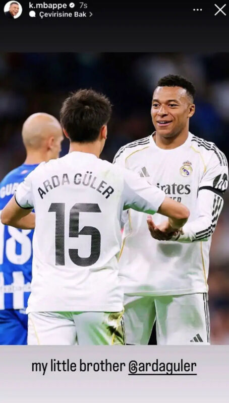 LaLiga'nın 33. haftasında Real Madrid'in Alaves'i 2-1 mağlup ettiği maçta Arda Güler, Kylian Mbappe'nin golünde asist yaparak bu maçı da boş geçmemişti. Karşılaşma sonrası ise Mbappe'den Arda Güler'le arasının bozuk olduğu iddialarına cevap niteliğinde bir paylaşım geldi.