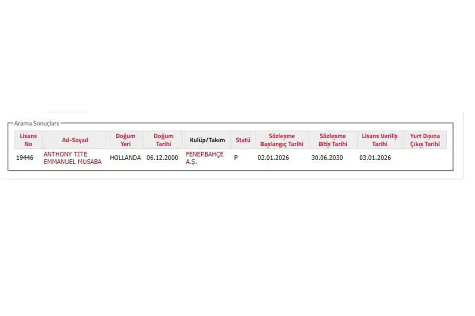 Sarı-lacivertli takımdan Türkiye Futbol Federasyonu’na yapılan bildirimde, Anthony Musaba ile 4.5 yıllık sözleşme imzalandığı belirtildi.