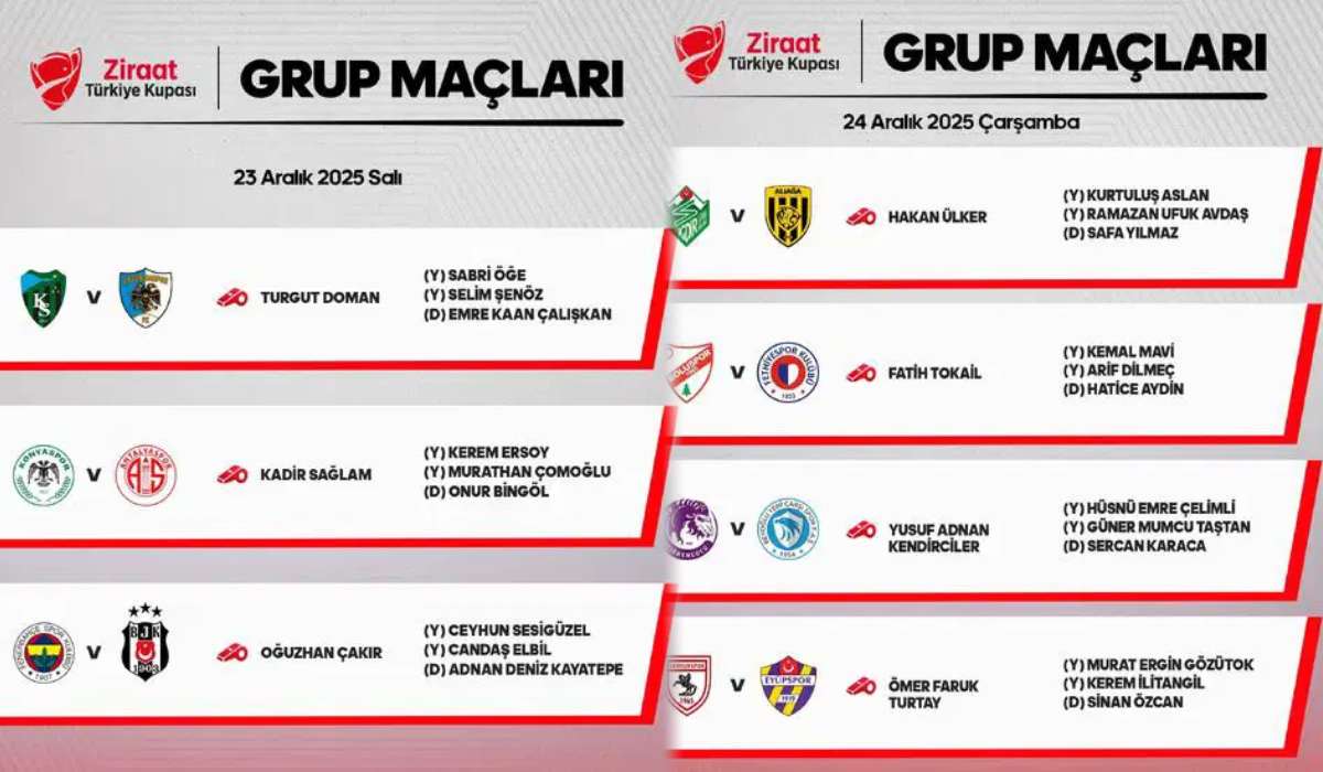 Ziraat Türkiye Kupası’nda düdük çalacak hakemler şu şekilde: