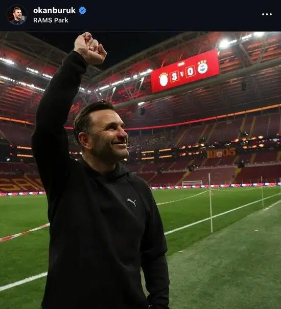 Süper Lig'in 31. haftasında kendi sahasında ağırladığı Fenerbahçe'yi 3-0 mağlup eden Galatasaray'da teknik direktör Okan Buruk, sosyal medya hesabından bir paylaşım yaptı.