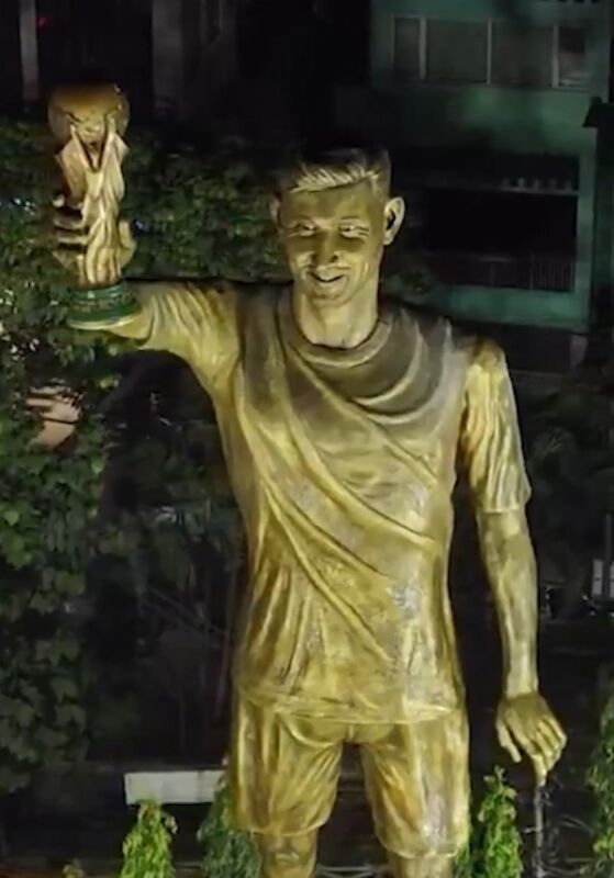 Batı Bengal eyaletinde yer alan ve bölgedeki futbol sevgisini yansıtmak amacıyla inşa edilen heykel, Messi’nin Arjantin formasıyla tasvir edildi. Buna rağmen heykelin yüz kısmındaki belirsiz ifadeler, iki futbolcunun karışımı bir görünüm ortaya çıkardı.