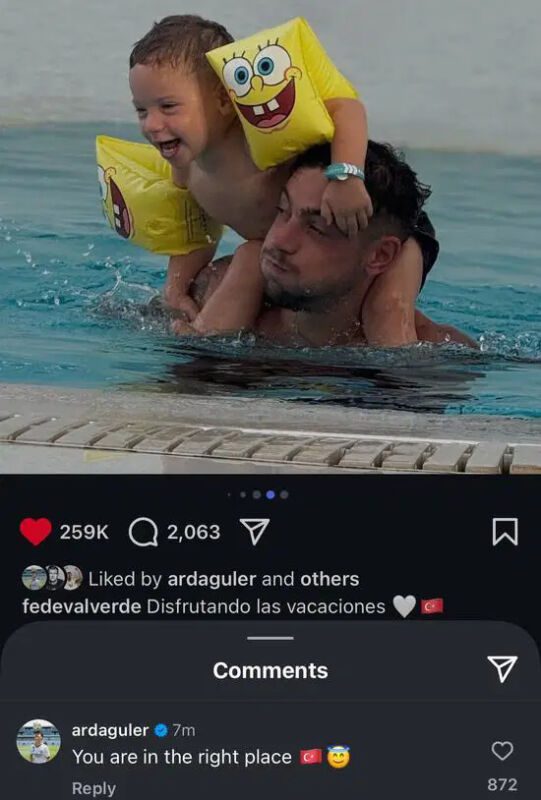 Arda Güler, takım arkadaşının paylaşımına yorum yaparak “Doğru yerdesin” diye yazdı.