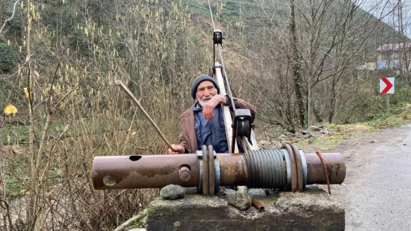 Güneysu ilçesi Selamet köyünde sarp arazide inşa ettiği 2 katlı binada yaşayan 90 yaşındaki Kasım Karaosman, araç yolu olmayan evi için yeni çözüm yolu buldu. Karaosman çaylık olan arazisi ile ana yol arasındaki 300 metrelik mesafeye, bölgede özellikle çay hasadı ile yük taşımada kullanılan ilkel teleferik sistemi kurdu.