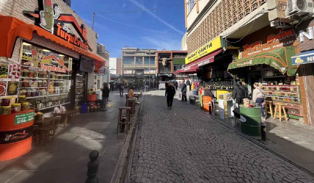 Kentin turistik yerlerinden olan Deliklitaş Mahallesi Değirmen Sokak üzerinde turşu satışı yapan çift, el ele vererek turşu kurmaktan satışa kadar bütün işleri birlikte yapıp geçimlerini sağladı.