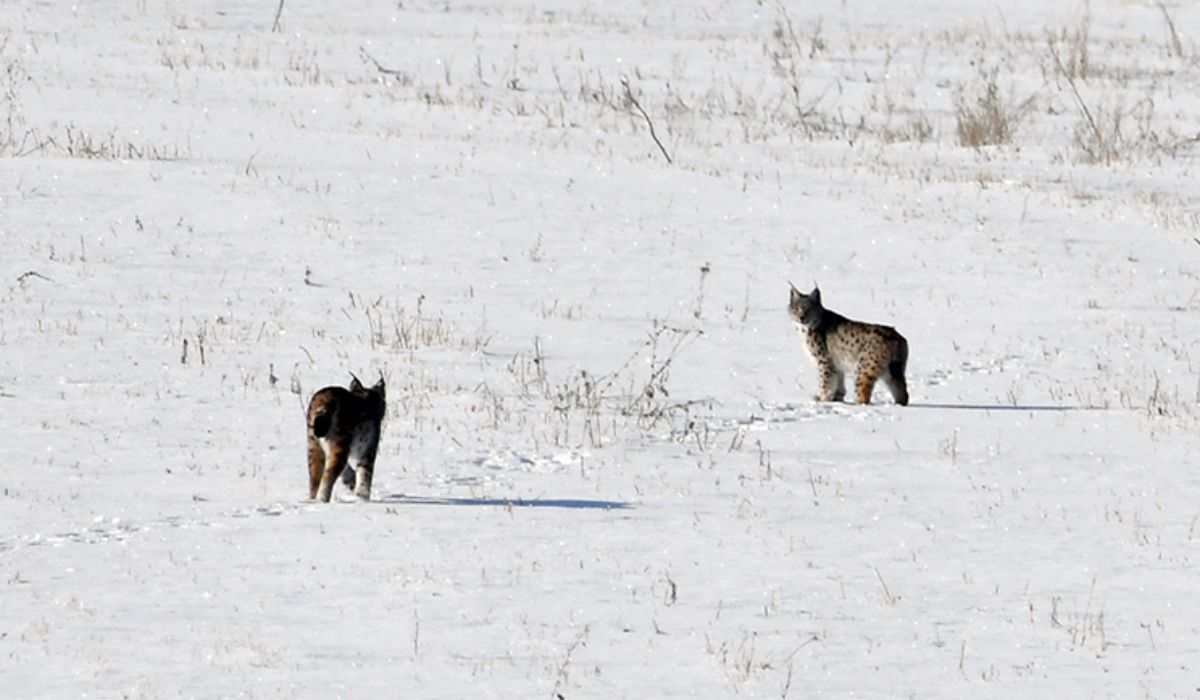 Genellikle gece avlandığı için ‘ormanın hayaleti’ olarak adlandırılan Kafkas vaşağı anne ve iki yavrusu, karlı arazide dolaşırken görüntülendi. Anne ve iki yavru vaşak bir süre karlı alanda dolaştıktan sonra ormanlık alana girerek gözden kayboldu.
